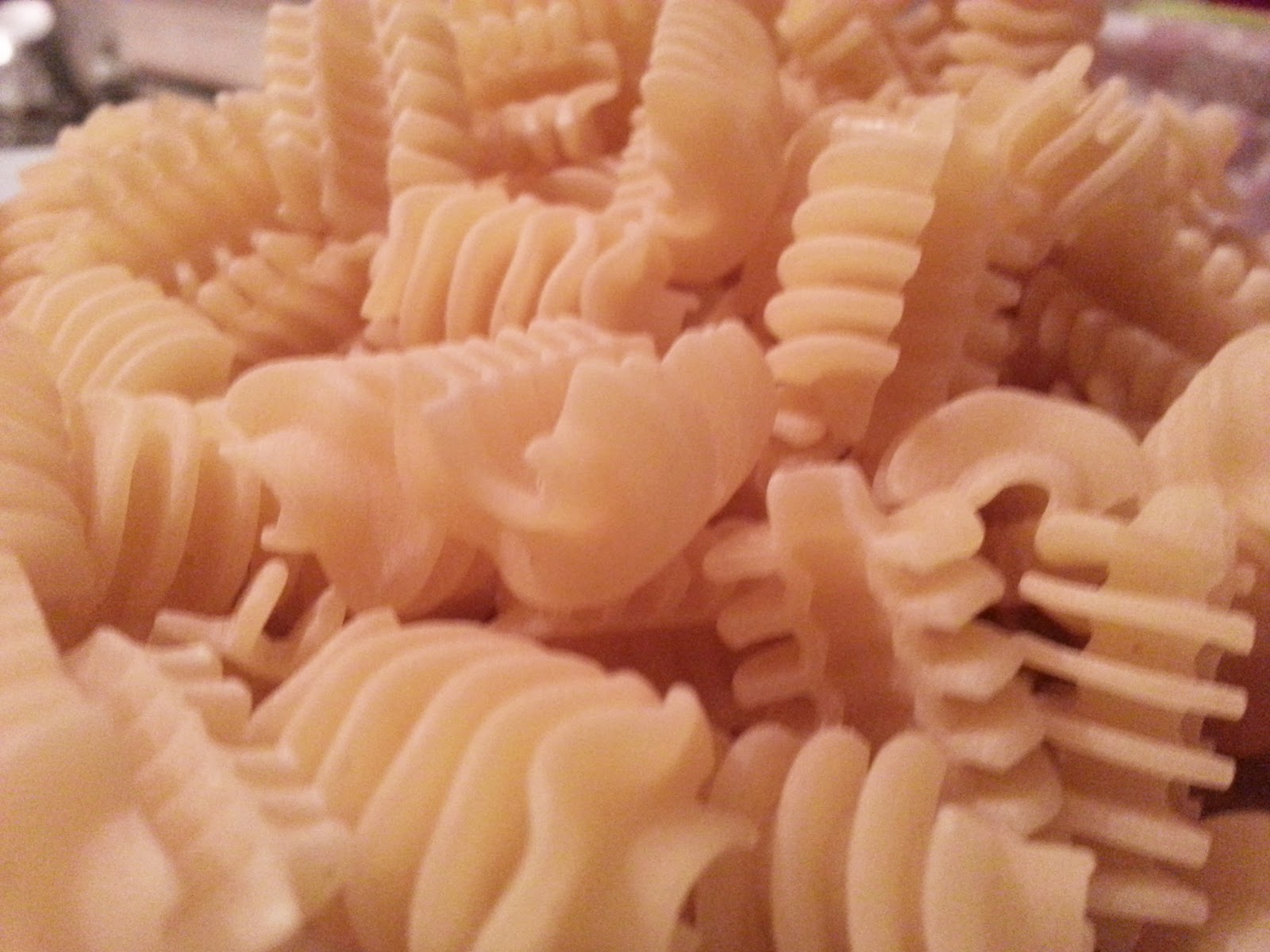 In the meantime, the water will come to a boil, pour a handful of salt and the macaroni (in this case their shape is called "radiatori" in the pot of water